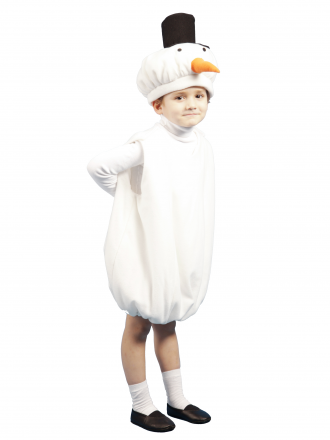 Веселый Снеговик - частый гость новогоднего утренника в детском саду. Карнавальный костюм Снеговик очень любят детишки. Костюм легко одевается, благодаря широким липучкам на плечах комбинезончика. Мягкая шапочка посажена по подкладку из хлопчатобумажной ткани, благодаря чему ребенок чувствует себя очень комфортно.