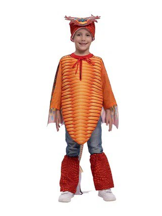 Костюм символа года - дракона. Прекрасно подойдет для праздника, участия в театрального выступления, утренника и встречи Нового года. Костюм состоит из крыльев и шапочки.